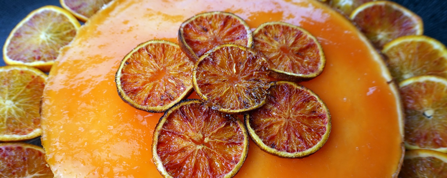 Während alle Schichten durchkühlen, habt ihr Zeit für die finale Dekoration. Um die Orangen zu karamellisieren, müsst ihr sie in feine Scheiben schneiden und auf einem mit Backpapier ausgelegten Backblech verteilen. Nun werden sie mit Rohrzucker bestreut und bei 180 Grad 8 – 10 Minuten gebacken. Bitte bleibt unbedingt dabei, denn der Zucker verbrennt schnell. Die Scheiben werden erst kross, wenn sie abgekühlt sind. Damit könnt ihr euren Kuchen verzieren – und eurem Genuss steht nichts mehr im Wege!