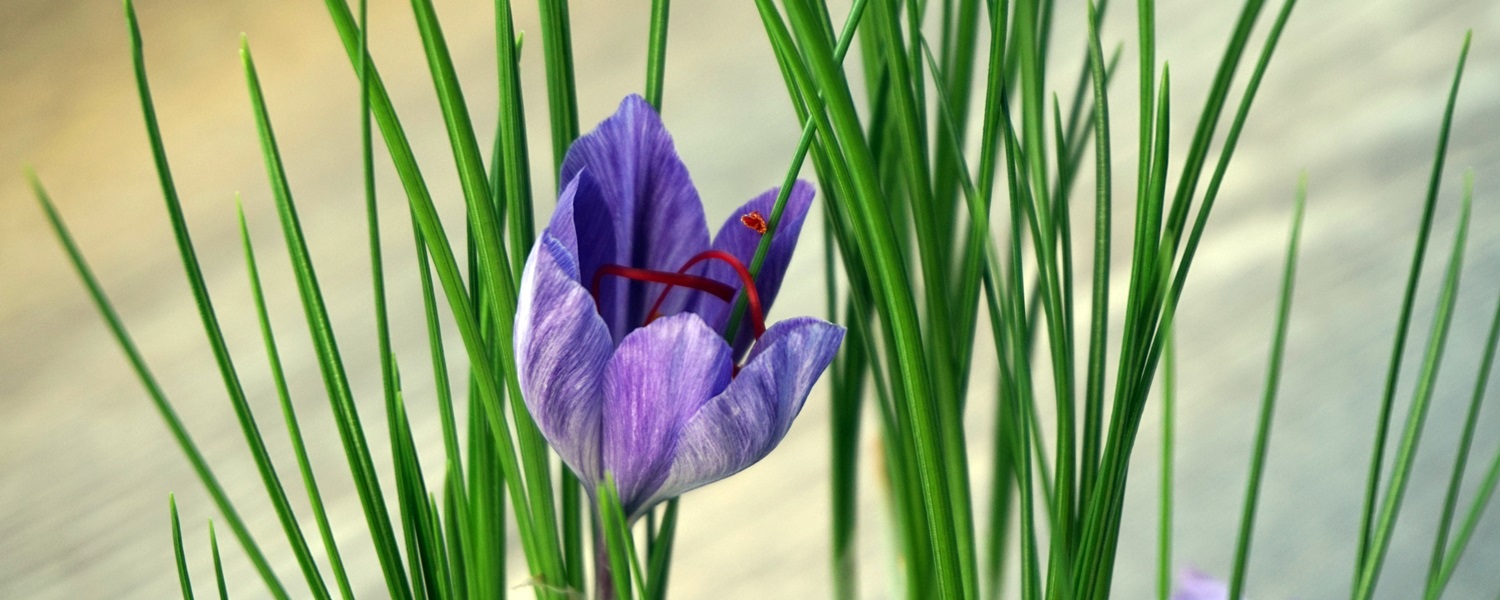 … zu einer Blume mit violetter Blüte und ihren drei Safranfäden entwickelt haben. Der Safrankrokus blüht nur drei Tage im Jahr…